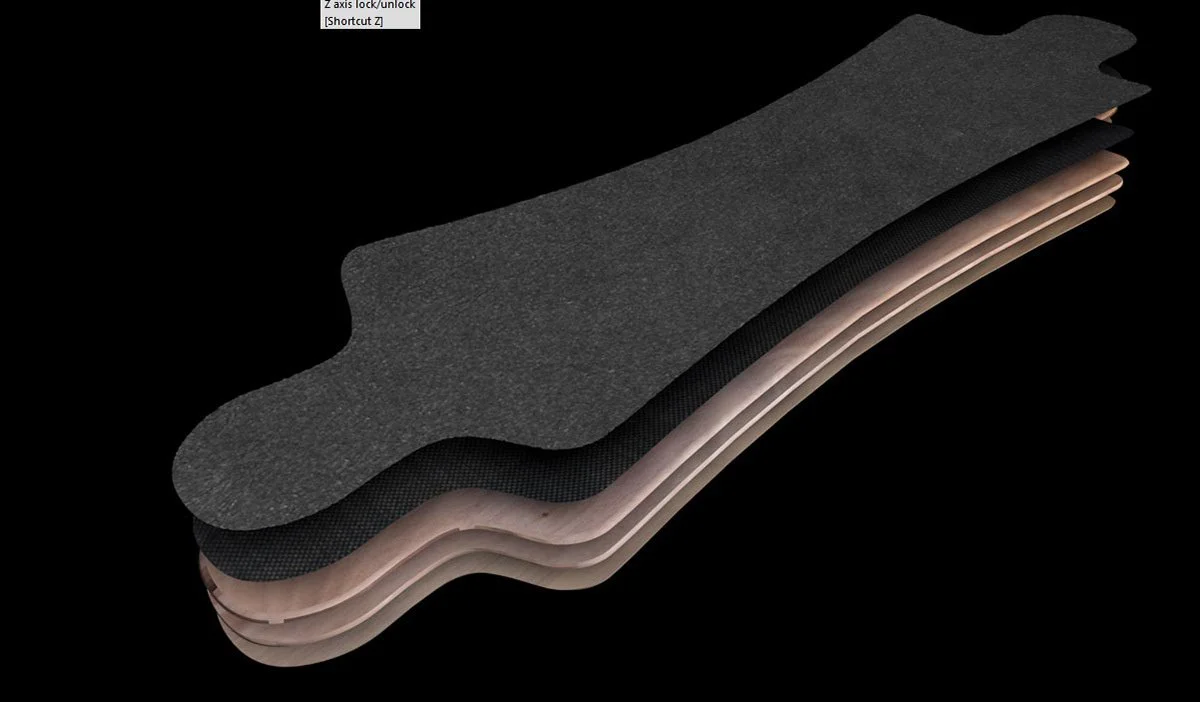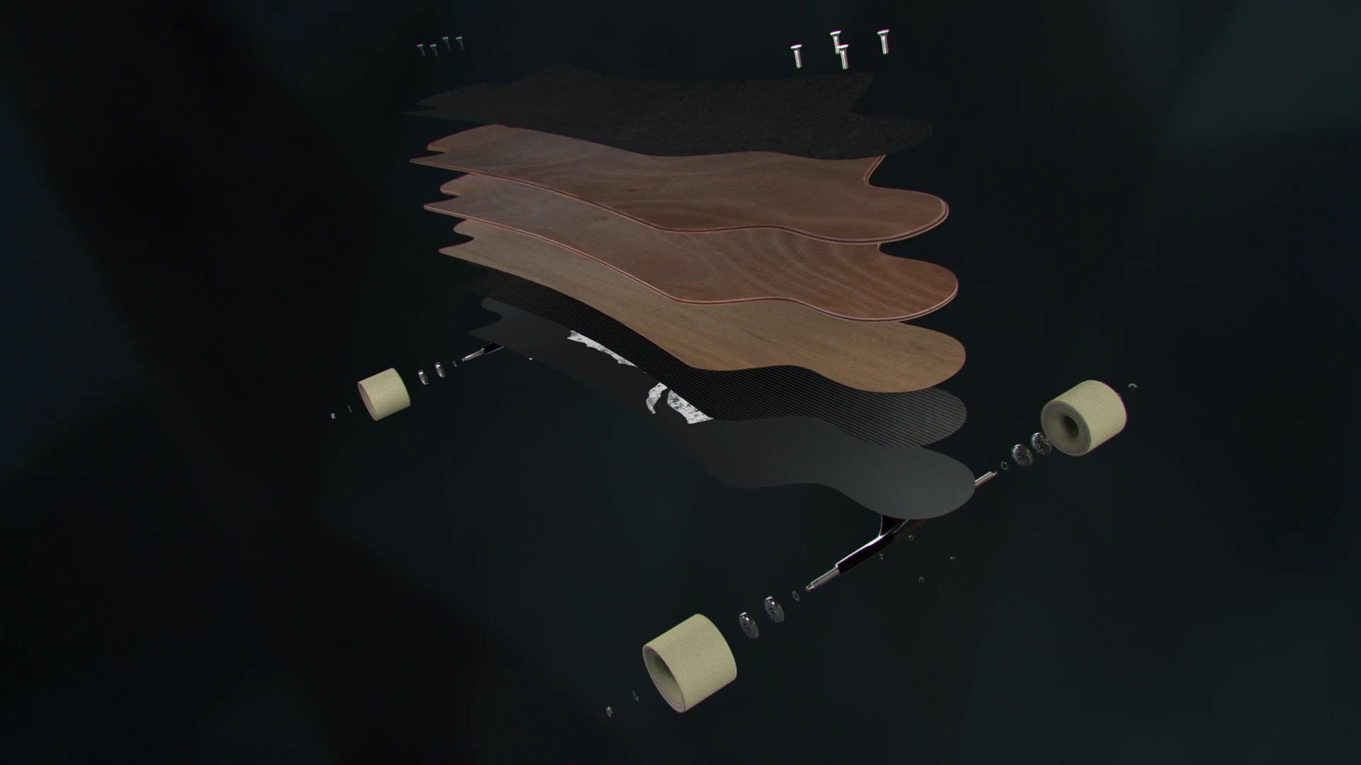 Role: For this I was tasked with creating a 3d representation of what elements make go into making a whiterose longboard.
